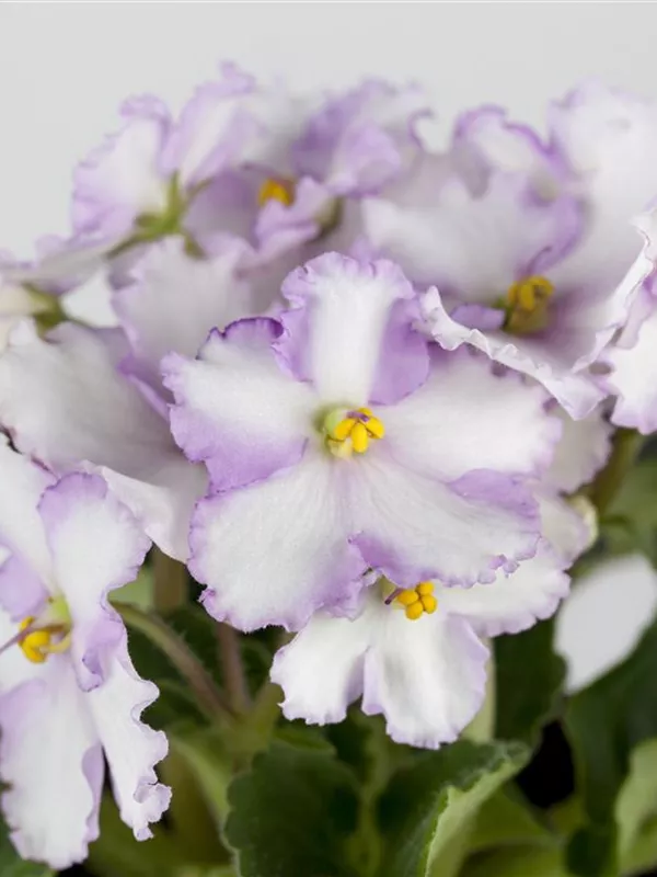 Primula obconica 'Touch Me'® bildet schalenförmige, rote, violette, weiße Blüten ab März.
