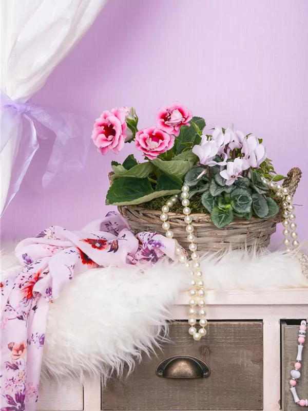 Die Falsche Gloxinie (Sinningia speciosa) ist eine rosa, rot, violett, zweifarbig blühende Pflanze, die eiförmige, matte, gekerbte Blätter trägt. Ihre glockenförmigen Blüten erscheinen von Juni bis August.