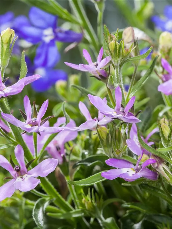 Die Blaue Lobelie (Lobelia erinus) ist eine beliebte Pflanze für den Balkon, die während der gesamten Saison unzählige blaue Blüten bildet. Ein sonniger bis halbschattiger Standort und ein durchlässiges Substrat werden bevorzugt.
