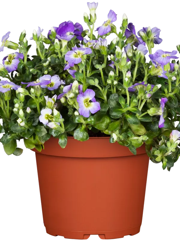 Aubrieta x cultorum bildet radförmige, blaue Blüten ab April.