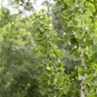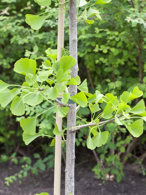 Der Fächerblattbaum (Ginkgo biloba) ist ein Baum, welcher kegelförmig wächst und gewöhnlich eine Höhe von ca. 20 m und eine Breite von ca. 15 m erreicht. Seine fächerförmigen, matten, ledrigen Blätter haben eine mittelgrüne Färbung. Sie verwandeln sich im Herbst in ein leuchtendes Goldgelb.