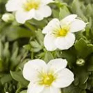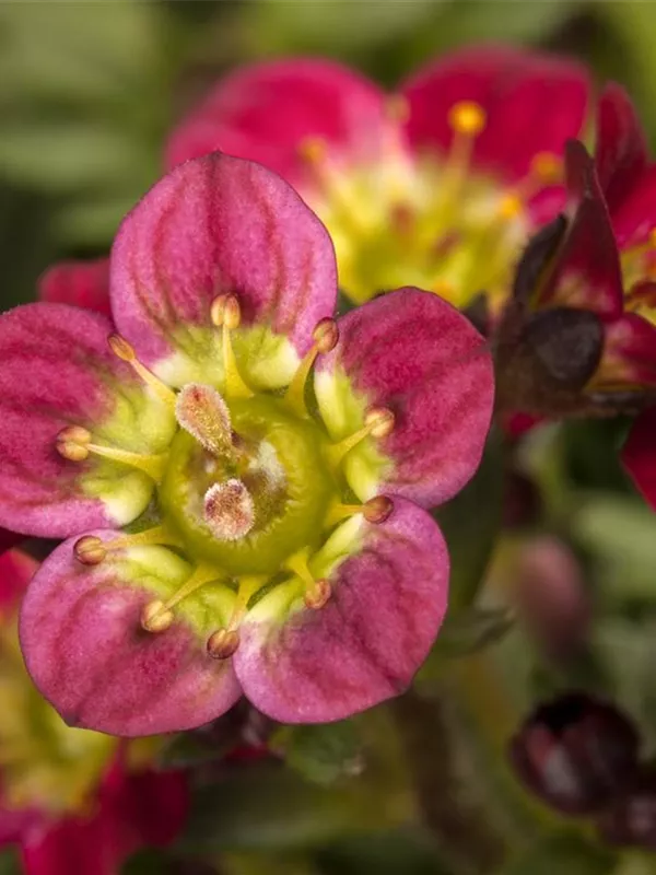 Der Garten-Moos-Steinbrech (Saxifraga x arendsii) ist eine wintergrüne Staude, die von April bis Mai rosafarbene, rote, weiße, schalenförmige Blüten bildet.