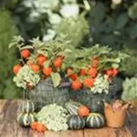 Besonders dekorativ sind die orange-roten Früchte von Physalis alkekengi. Diese erscheinen ab August.