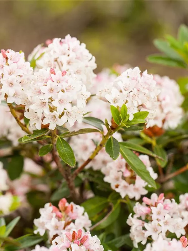 Der Rhododendron 'Bloombux'® (Rhododendron micranthum) bringt im Juni ein wahres Meer aus rosafarbenen Blüten hervor. Dieses aufrecht, kompakt, dicht wachsende Gehölz erreicht gewöhnlich eine Höhe von 0,6 - 1 m. Ein halbschattiger (bis schattiger) Standort und ein durchlässiger Boden schaffen optimale Bedingungen für ein gesundes Wachstum. Der Rhododendron 'Bloombux'® ist gut frostverträglich.