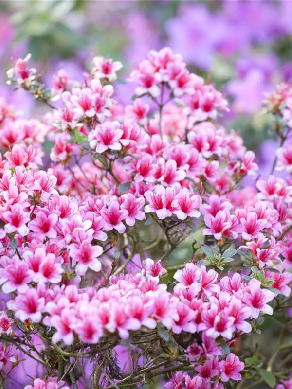 Die Japanische Azalee (Rhododendron obtusum) bringt von Mai bis Juni ein wahres Meer aus roten Blüten mit rosafarbener, weißer hervor.