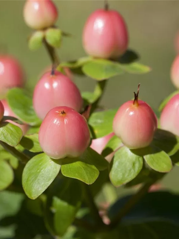 Besonders dekorativ sind die roten Früchte von Hypericum inodorum. Diese erscheinen ab September.