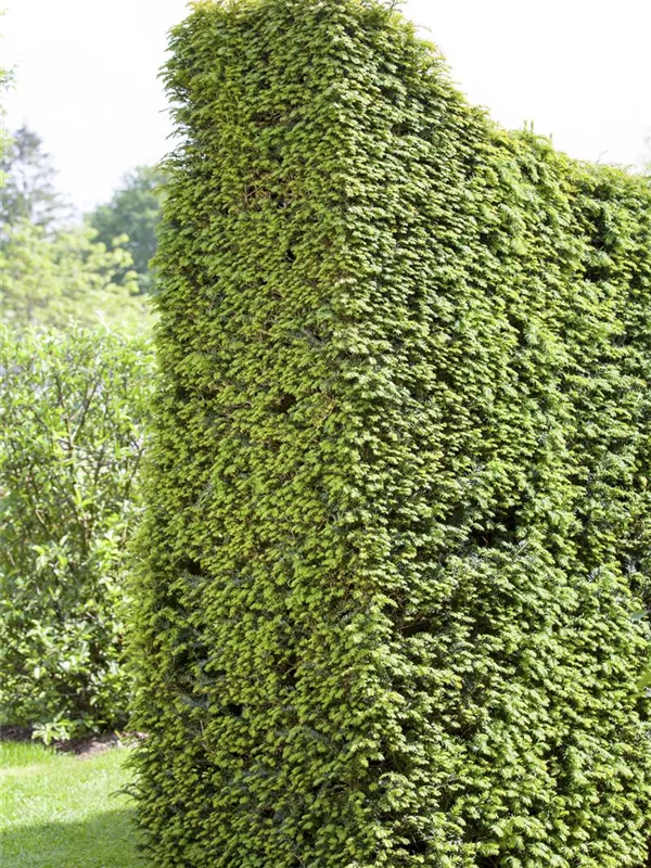 Die Heimische Eibe (Taxus baccata) ist ein Kleinbaum, welcher aufrecht wächst und gewöhnlich eine Höhe von ca. 15 m und eine Breite von ca. 10 m erreicht. Ihre nadelförmigen Blätter haben eine dunkelgrüne Färbung. Dekorative rote Zapfen zieren Taxus baccata ab September.