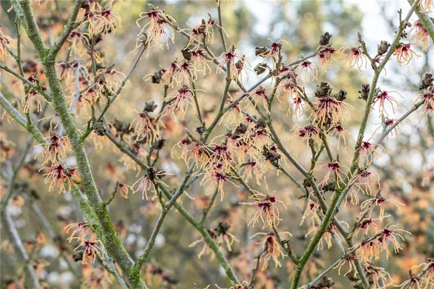 Die Zaubernuss ist, geschickt ins Gartenkonzept integriert, ein echter Hingucker. Kein Wunder, denn die besonderen Blüten bringen Farbe in den Winter. Wenn der meist trist und grau ist, kommen die farbenfrohen Blüten ins Spiel, die dem Winter eine ganz andere Stimmung verleihen. Fast ein bisschen magisch, wer hätte es gedacht.