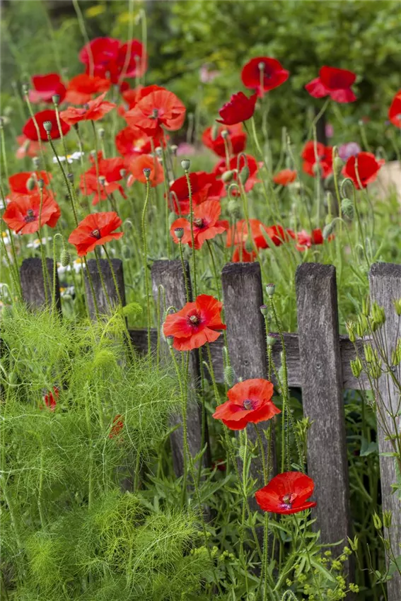 Damit kommen wir zu den konkreten Wirkungsweisen, die den verschiedenen Farben innewohnen. Die stärkste Wahrnehmung kann Rot für sich verbuchen. Mit seiner automatischen Signalfunktion wirkt es großflächig eingesetzt zu aufdringlich. Aber geschickt platziert, kann die Farbe wunderbare aktivierende Akzente setzen. Die intensiven Blüten des Mohns, die korallenroten Früchte der Berberitze, das herrliche Laub der Blutbuche, der exotische Feuerahorn und die ausdrucksstarken Triebe des Hartriegels im Winter sind einige Beispiele.