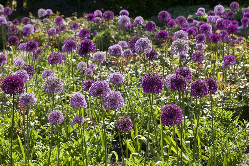 Was passiert im Reich des Schattens? Unter den Zierlauch-Varianten finden sich herrlich große Exemplare, die gern im Halbschatten wohnen. Ein wahrer Gigant begleitet sie mit dem Blauregen, der keinen besseren Namen haben könnte. Die Schlingpflanze übertrumpft jeden Untergrund mit ihrem pompösen Anblick. Hortensien fühlen sich ohne ständige Sonnenbestrahlung wohl, und der Rittersporn lässt seinen effektvollen Flor ebenfalls sprießen. Mit der Blaublattfunkie kommt eine beeindruckende Blattschmuckpflanze mit voluminösem Laubwerk dazu. Der Scheinmohn ergänzt die Symphonie in Blau und Violett.