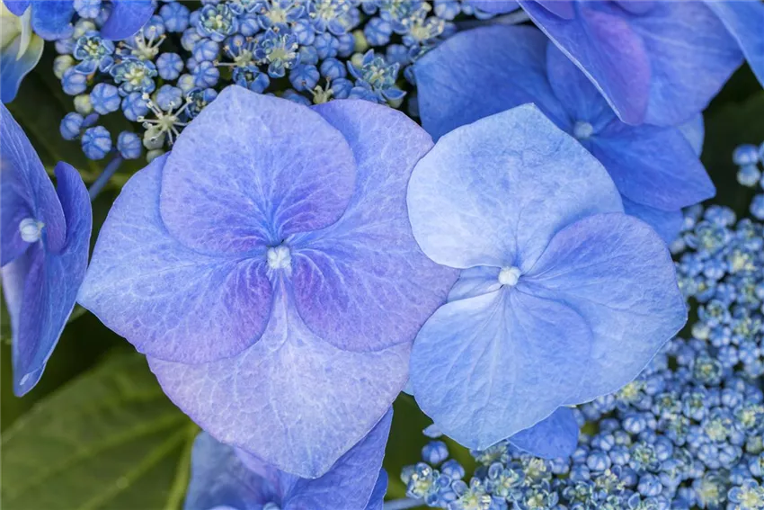 Unter den Hortensienarten ist die Bauern- oder Gartenhortensie in deutschen Gärten besonders beliebt. Ihr schirmartiger Flor erscheint auf Stängeln mit bis zu zwei Metern Höhe. Die durstige Zimmer- und Beetpflanze braucht mindestens Halbschatten, Mittagssonne schadet ihr. Sie blüht in Weiß und Rosa, das sich bei saurer Erde in Blau verwandelt. Diese Wandlung vollzieht auch die filigrane Tellerhortensie. Ihr namensgerechter flacher, tellerartiger Doldenflor zeigt sich in den Farben Weiß, Blau, Rot und Rosa. Viele Blüten erscheinen im bicoloren Outfit. Die schattenliebende Pflanze begnügt sich mit einem Meter Höhe. Beide Hortensienarten vervollständigen den Bauerngarten und sind perfekt für den Naturgarten geeignet.