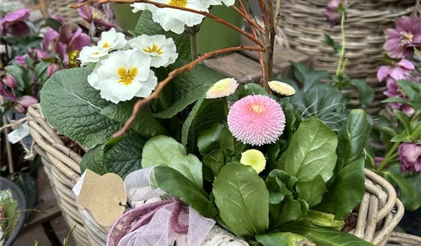 Ob zarte Primeln und Narzissen im Frühling, Fuchsien und Margeriten im Sommer, Heide und Astern im Herbst oder Amaryllis und Tannenzweige im Winter - Gestecke und Kränze begeistern zu jeder Jahreszeit.