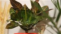 Große Blätter im dunklen Grün mit interessantem Muster in Orange: Der Wunderstrauch ist aus guten Gründen eine beliebte Zimmerpflanze fürs gemütliche Heim.